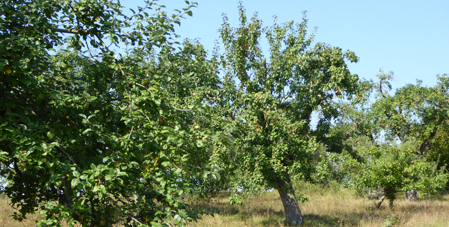 Aber wir können nicht meckern. Der Großteil der Apfelbäume hat ganz gute Erträge. Auf wenigen Bäumen hängt allerdings fast kein Apfel. Es sind die frühen Sorten. Da hat der Wettergott während der Blütezeit leider nicht mitgespielt.