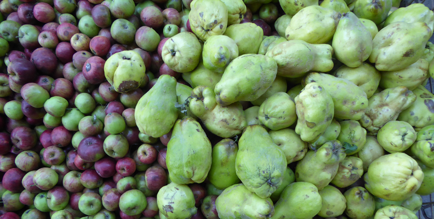 Am 4. Oktober ging es dann in den Garten von Ilona und Abdel zur Quittenernte. Mit Quitten verfeinert Diedrich schon seit Jahren seinen Hausschoppen.
