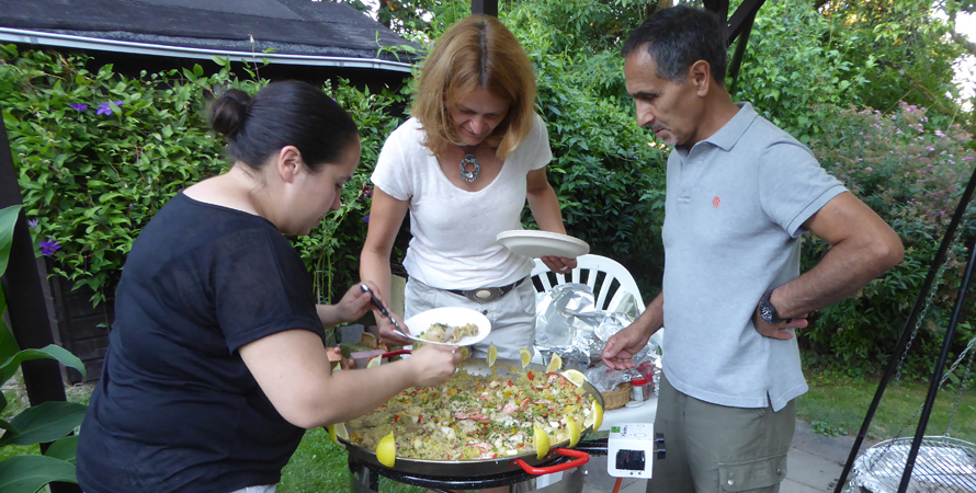 Genussfreudige, arbeitswillige Freunde, erlesene Zutaten, eine zauberhafte Location, je nach Anzahl der Genussmenschen - eine entsprechend große Paellapfanne, traumhaftes Wetter, viel Spaß am gemeinsamen Kochen und selbstverständlich erlesene Getränke.