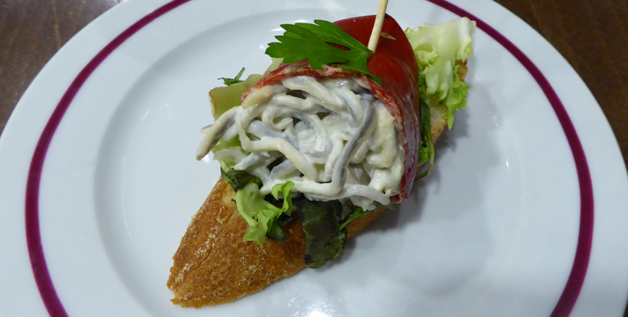Im Tapa-Restaurant Lizarran sind wir von den abwechslungsreichen kleinen Köstlichkeiten begeistert. Die Theke hält eine Vielzahl an kalten Tapas zur Auswahl bereit. Die Entscheidung fällt sehr schwer. Denn von Zeit zu Zeit bietet die freundliche Bedienung, auf ihrem Rundgang, auch noch diverse warme Kleinigkeiten an. Abgerechnet wir nach der Anzahl der Holzspießchen, die Kleinen für 1,40, die Großen für 1,90. Die Auswahl der Weine ist klein und überschaubar. Wir haben uns für einen Weißwein aus Rueda und eine Crianza aus Rioja entscheiden und wurden nicht enttäuscht.