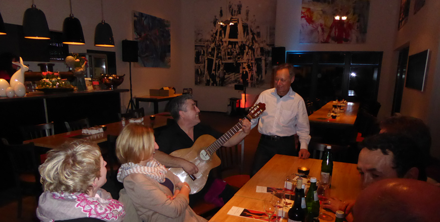 Wir haben 10 Rotweine aus 9 verschiedenen spanischen Weinbauregionen ausgeschenkt, um die Vielfalt und Bandbreite zu zeigen. Die überaus positive Resonanz hat uns mit der getroffenen Auswahl Recht gegeben. Es war für fast jeden Geschmack etwas dabei. Geli und Ihr Team haben das Ganze mit einer Vielzahl an Tapas bereichert. Roberto Moreno, mit seinem spanischen Temperament und seiner auch einfühlsamen Musik hat den kurzweiligen Abend perfekt abgerundet.